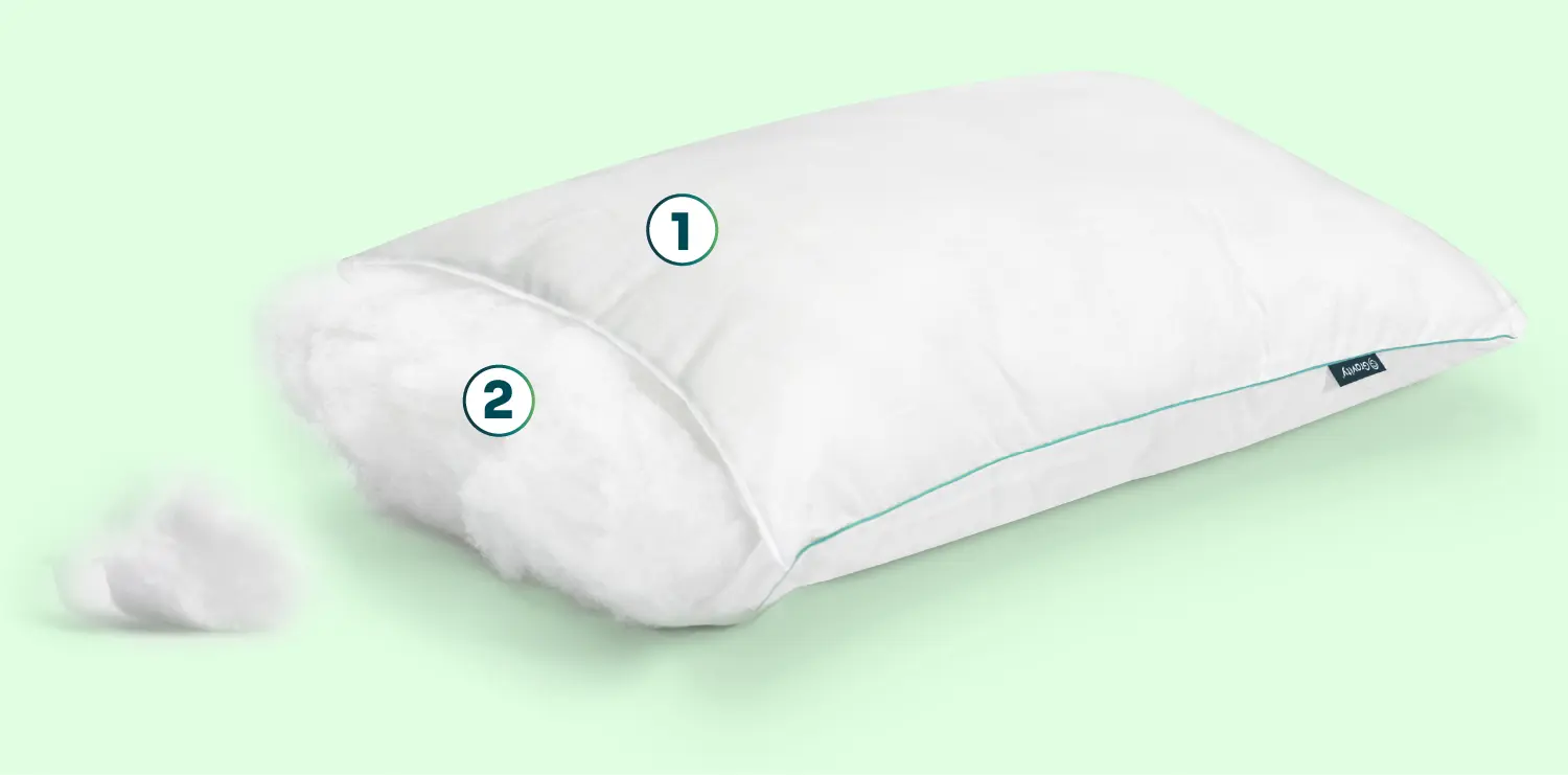 La almohada está rellena con fibra siliconada ecológica elaborada a partir de botellas PET recicladas, lo que no solo ofrece comodidad sino que también contribuye a la sostenibilidad ambiental.
